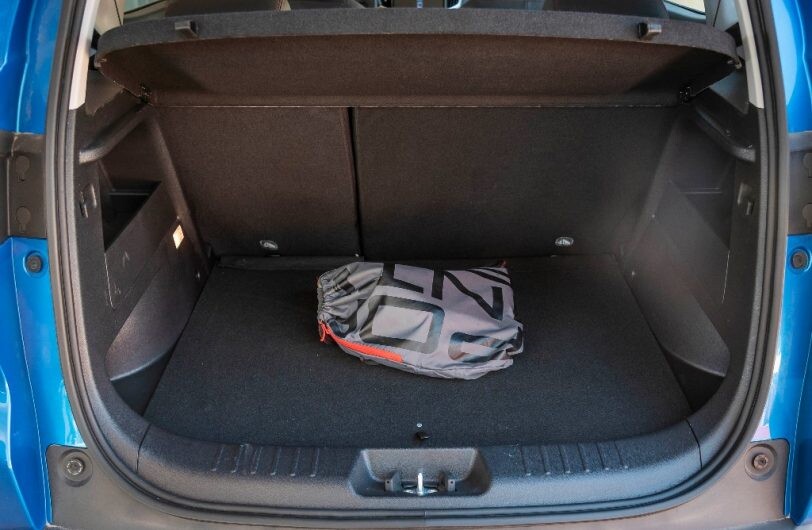 El baúl está dentro del promedio, con 360 litros, y por debajo aparece un auxilio del tipo temporal, con llanta de 15 pulgadas.