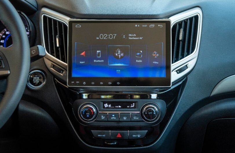 Los comandos quedan a mano y la pantalla táctil (de muy buena resolución y calidad de sonido) incluye la posibilidad de ver fotos y películas. La navegación no tenía los mapas disponibles y tampoco se puede espejar el celular para acceder a las aplicaciones. Sí hay doble entrada USB y de 12 voltios.