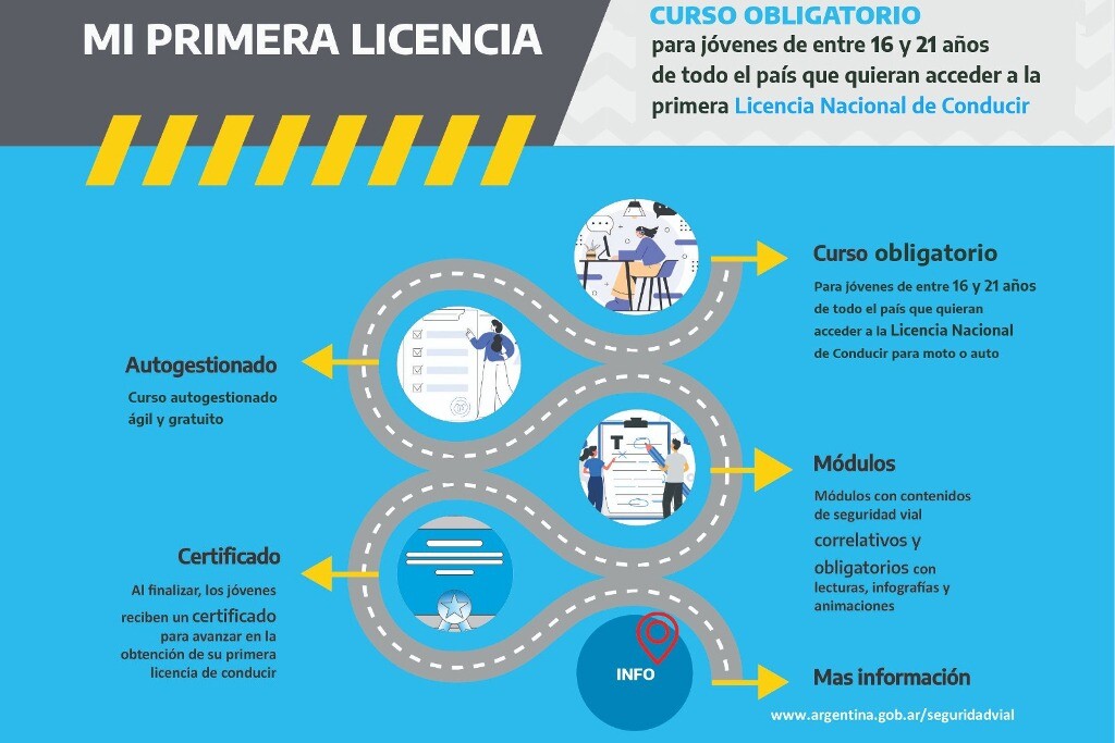 La Agencia Nacional de Seguridad Vial lanzó el programa “Mi primera licencia”, que consta de un curso obligatorio para todas las personas entre 16 y 21 años que tramiten la Licencia Nacional de Conducir en todo el país.